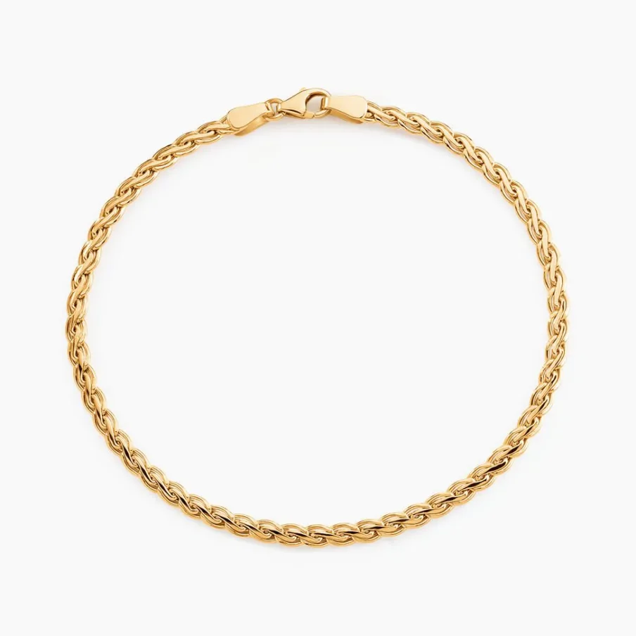 Bracelet Or Jaune 375/1000 Maille Palmier Ecrase 3mm 20cm