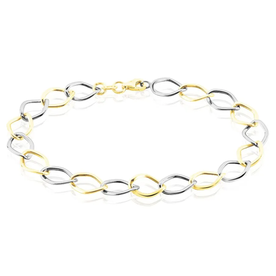 Bracelet Or Bicolore 375/1000 Maille Forçat Losange 19cm