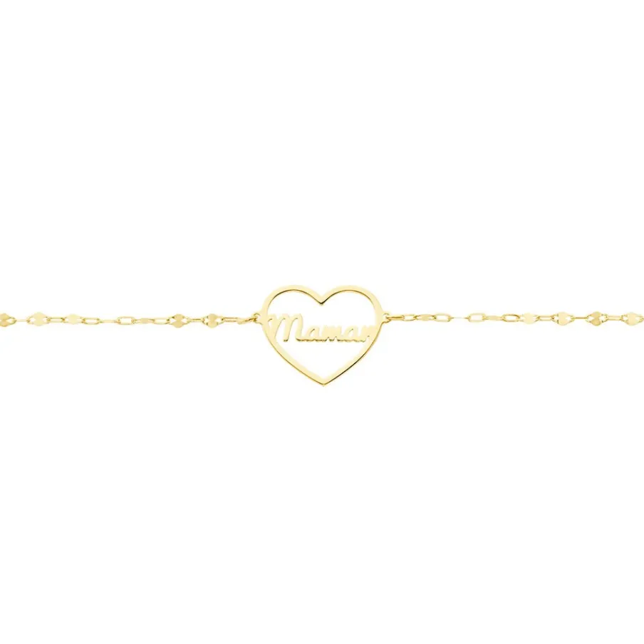 Bracelet Or Jaune 375/1000 C艙ur Ajoure Avec Message Maman Maille Lumina 16+2cm