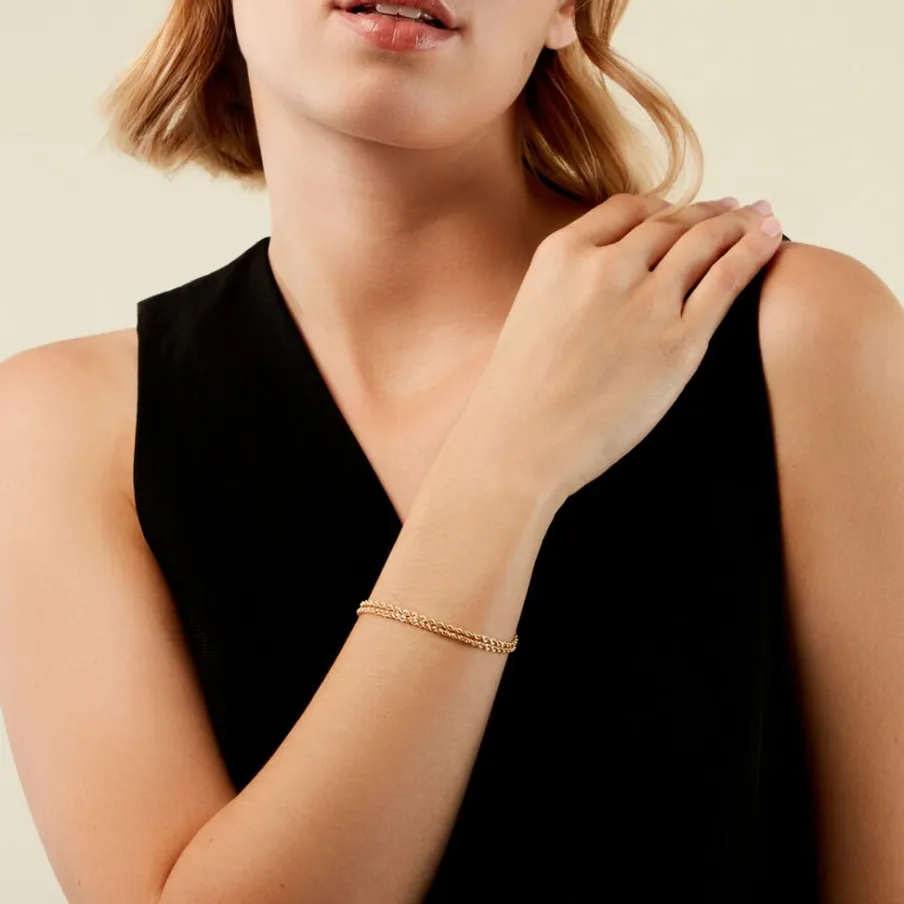 Bracelet Or Jaune 375/1000 Double Maille Corde Largeur 2,2Mm 19Cm