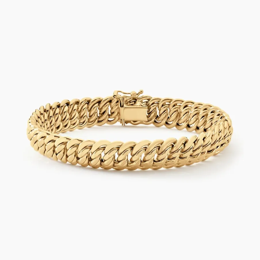 Bracelet Or Jaune 375/1000 Maille Américaine 11mm 19cm
