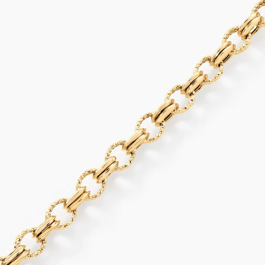 Bracelet Maille Or Jaune 750/1000 Maille Lisse Et Godronnee Largeur 7,5Mm 19Cm