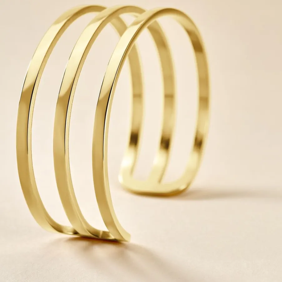 Bracelet Jonc Acier Inoxydable Jaune Ouvert 3 Rangs Ajoures