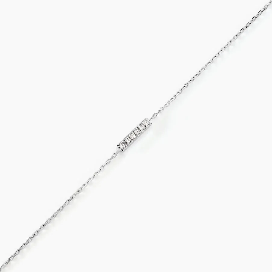 Bracelet Or Blanc 375/1000 Forme Barrette Diamants 16+2cm