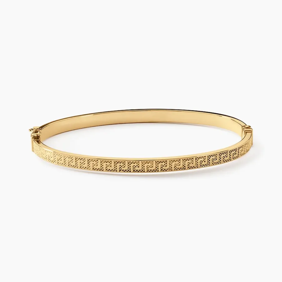 Bracelet Jonc Or Jaune 750/1000 Fil Plat Motif Grec Diametre 60Mm
