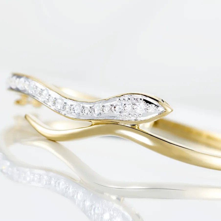 Bracelet Jonc Plaqué Or Jaune Serpent + Oxydes De Zirconium + Rhodium 62mm