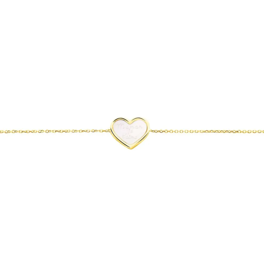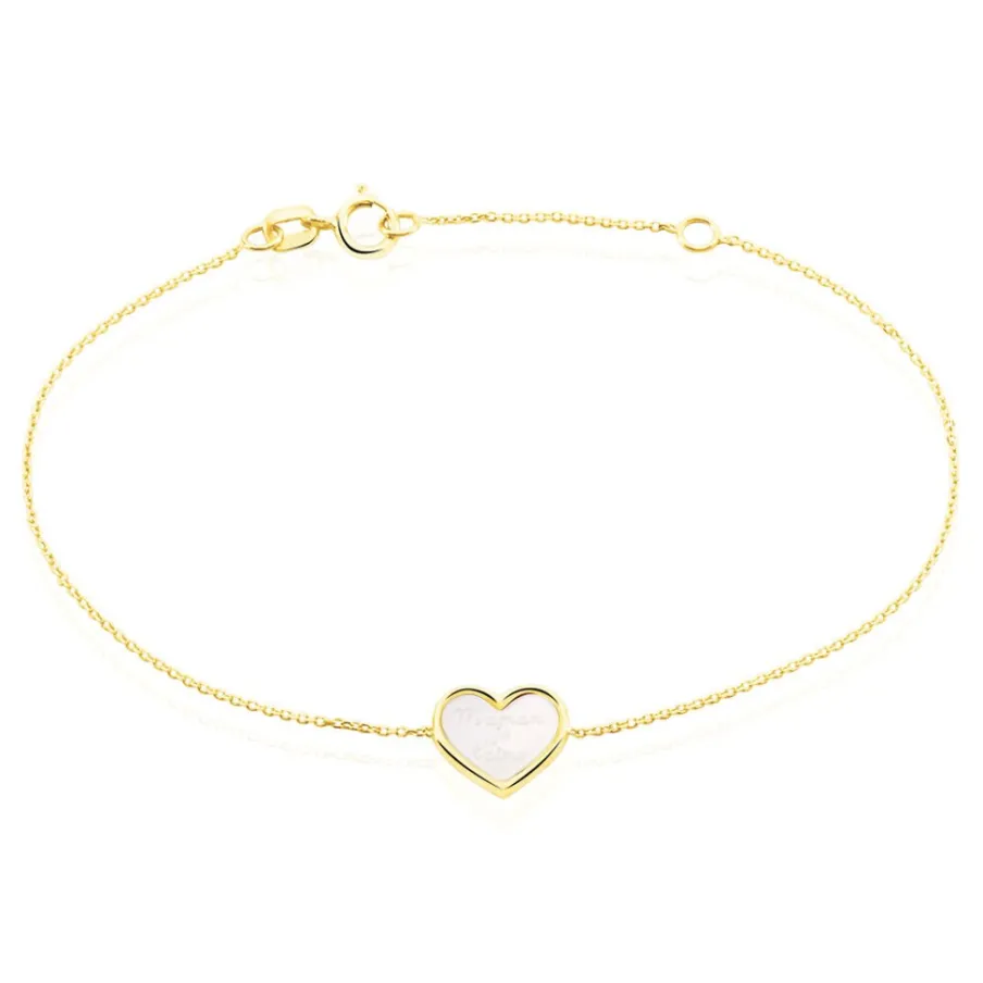 Bracelet Or Jaune 375/1000 C艙ur Nacre Blanche Message Maman Je T’aime Maille Jaseron 16+2cm