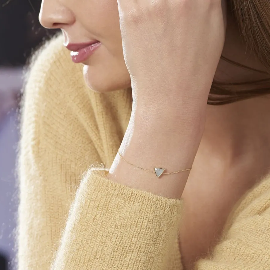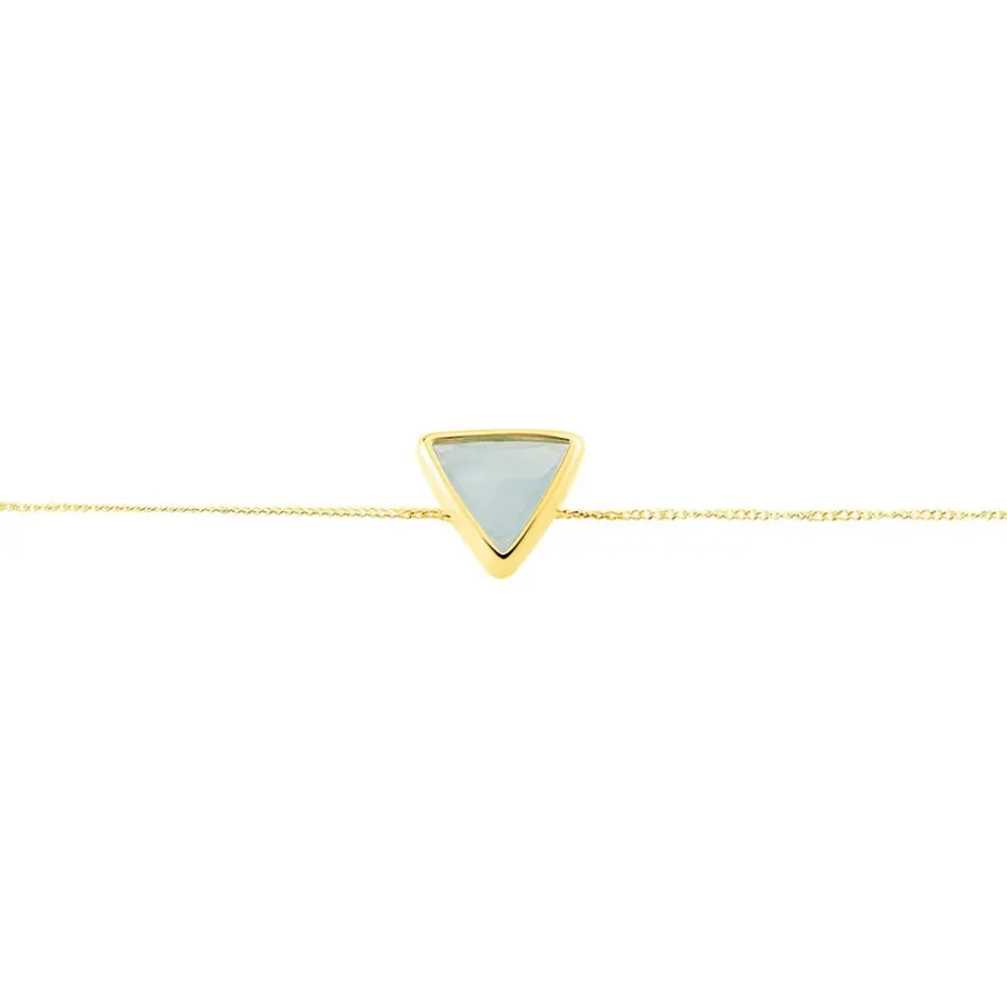 Bracelet Or Jaune 375/1000 Aigue Marine Forme Triangle Serti Clos 18cm
