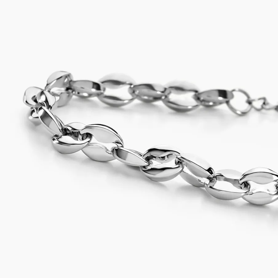 Bracelet Acier Inoxydable Blanc Maille Grain De Cafe Largeur 5mm 19+2cm