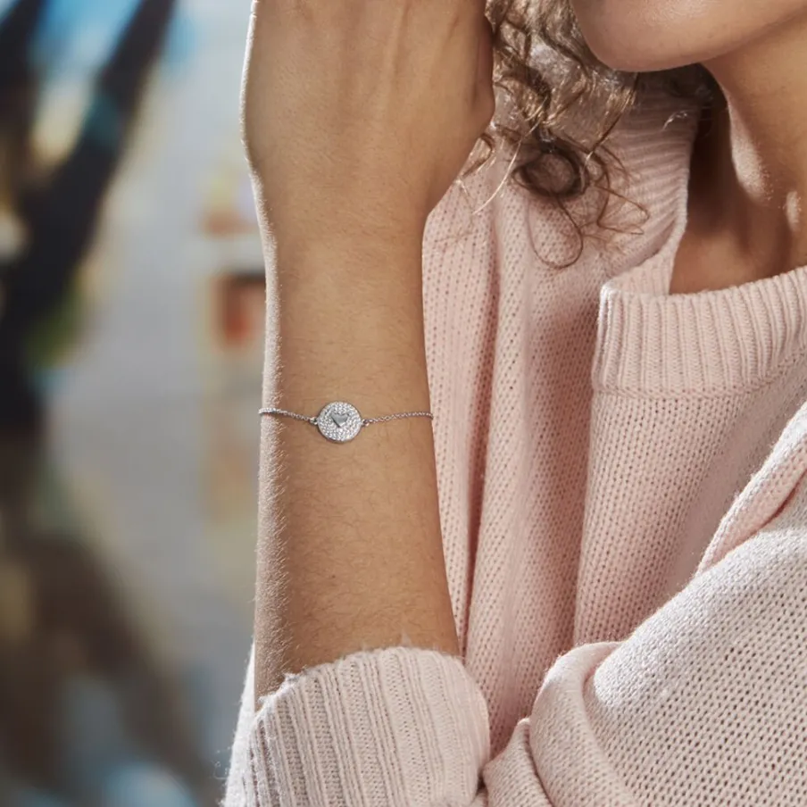 Bracelet Argent 925/1000 Pastille C艙ur Maille Forçat Pavage Oxydes De Zirconium 18.5cm