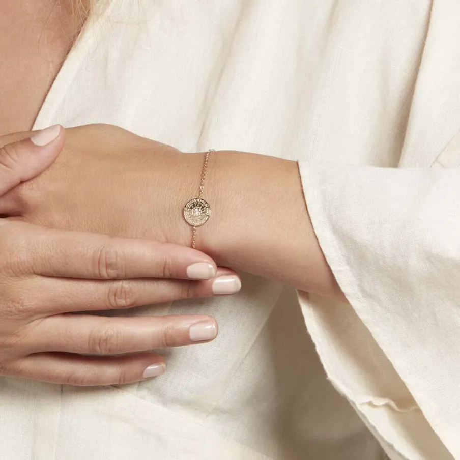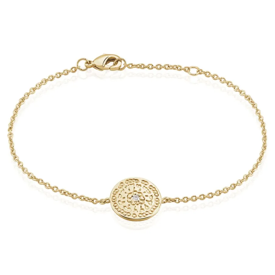 Bracelet Plaqué Or Jaune Forme Ronde Rosace Oxyde De Zirconium 18cm