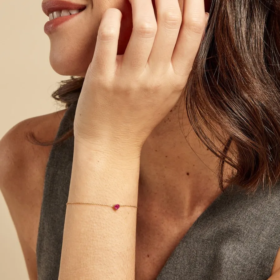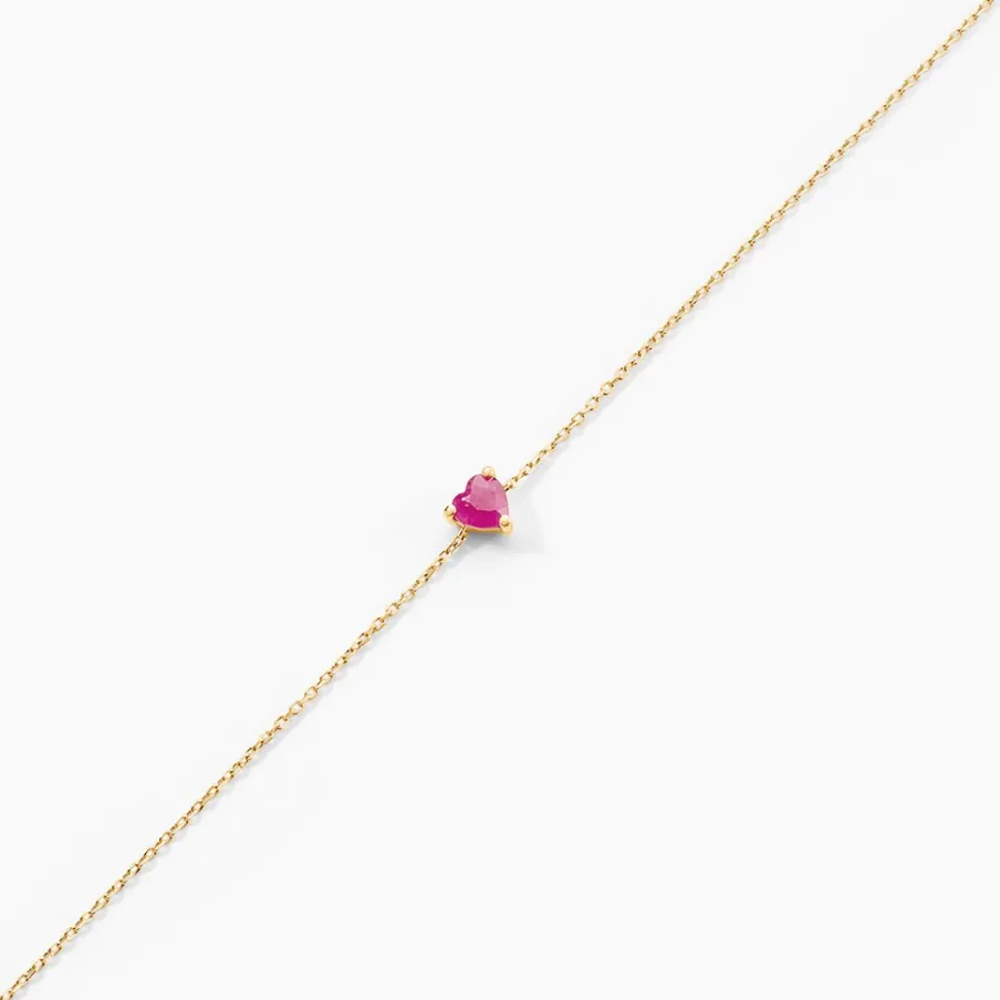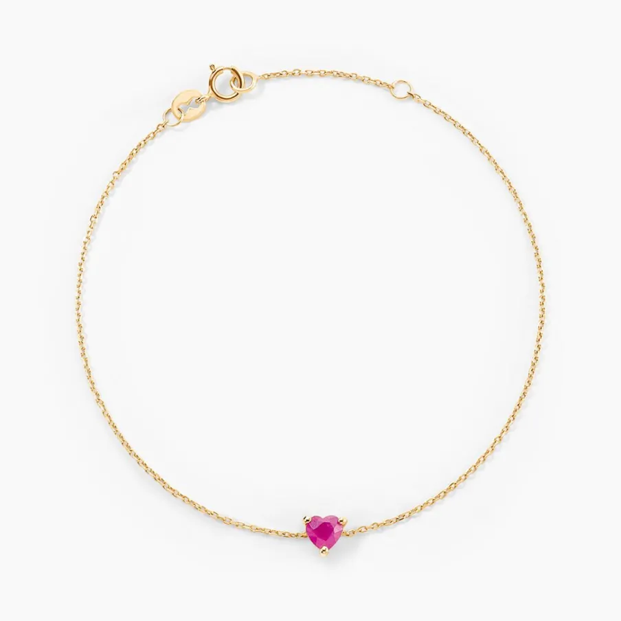 Bracelet Or Jaune 375/1000 C艙ur Rubis 0.25cts Serti Griffes Maille Forcat 16+2cm