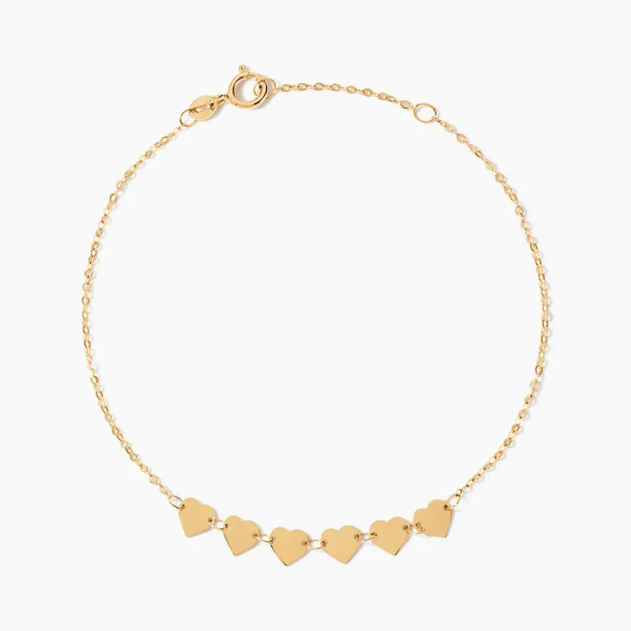 Bracelet Or Jaune 375/1000 6 Coeurs Maille Forcat 16+2cm