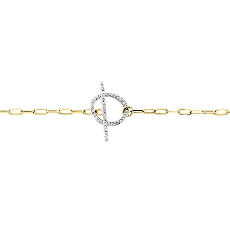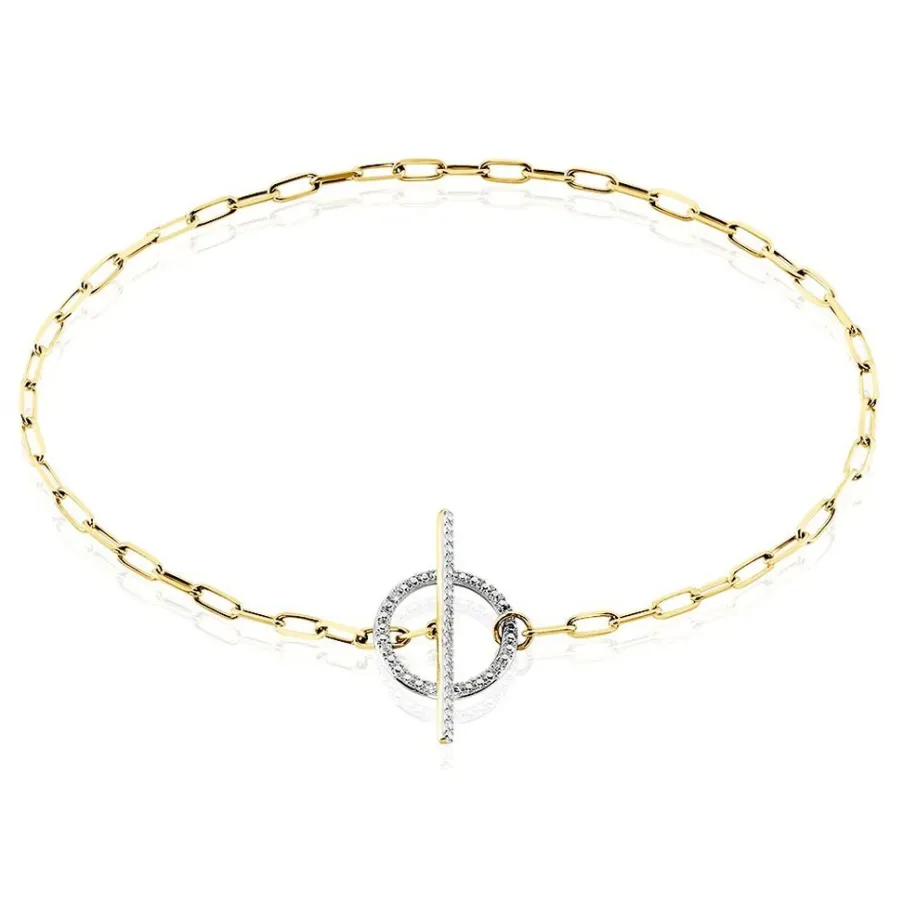 Bracelet Or Jaune 375/1000 Cercle Ajouré Diamants 0.023cts Maille Cheval 18cm