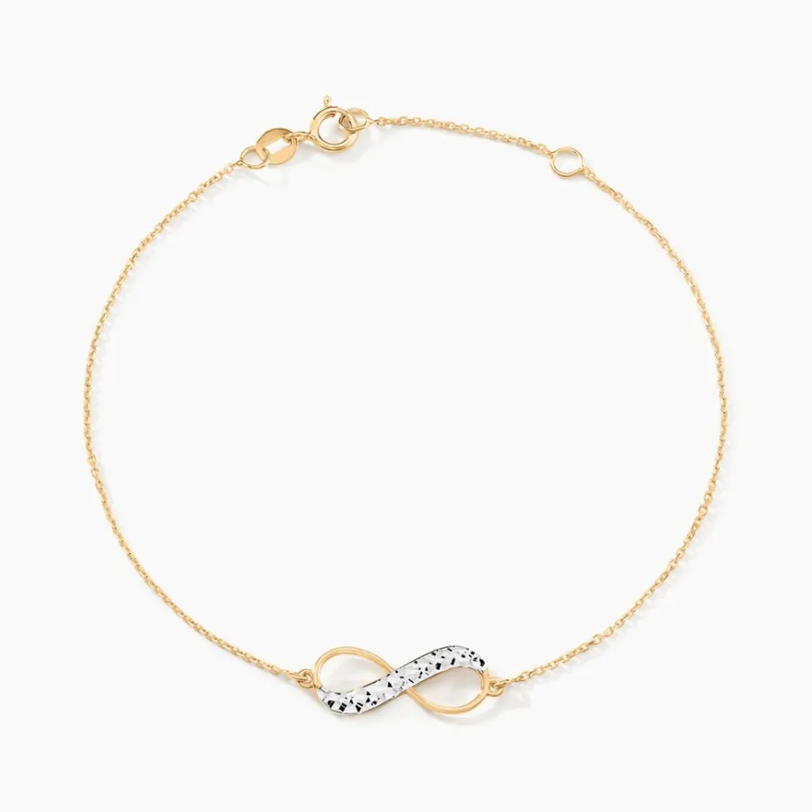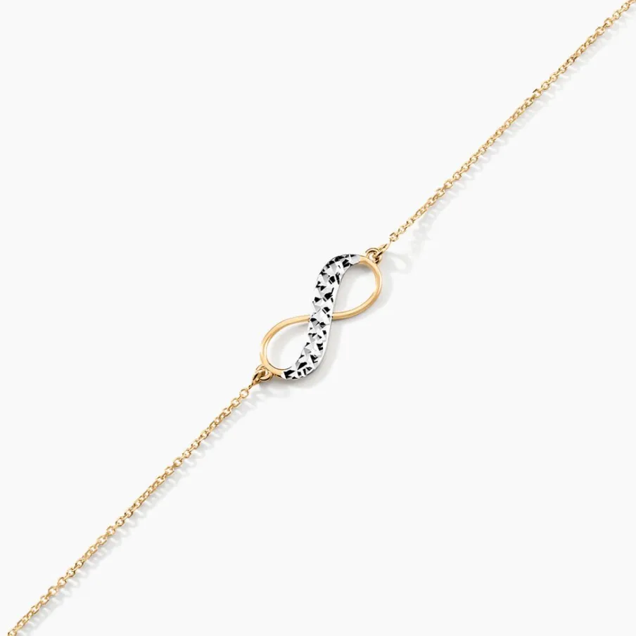 Bracelet Or Jaune 375/1000 Infini Effet Diamante Maille Jaseron 16+2cm
