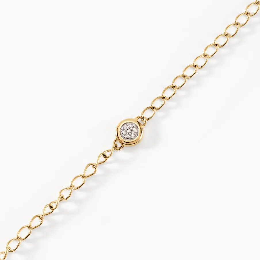 Bracelet Or Jaune 375/1000 Rond Diamants 0.004cts Illusion Maille Gourmette 21cm