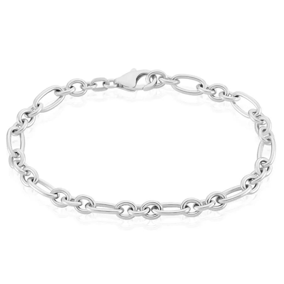 Bracelet Maille Argent Blanc 925/1000 Maille Alternée Ronde 1/3 Largeur 4.8mm 19cm