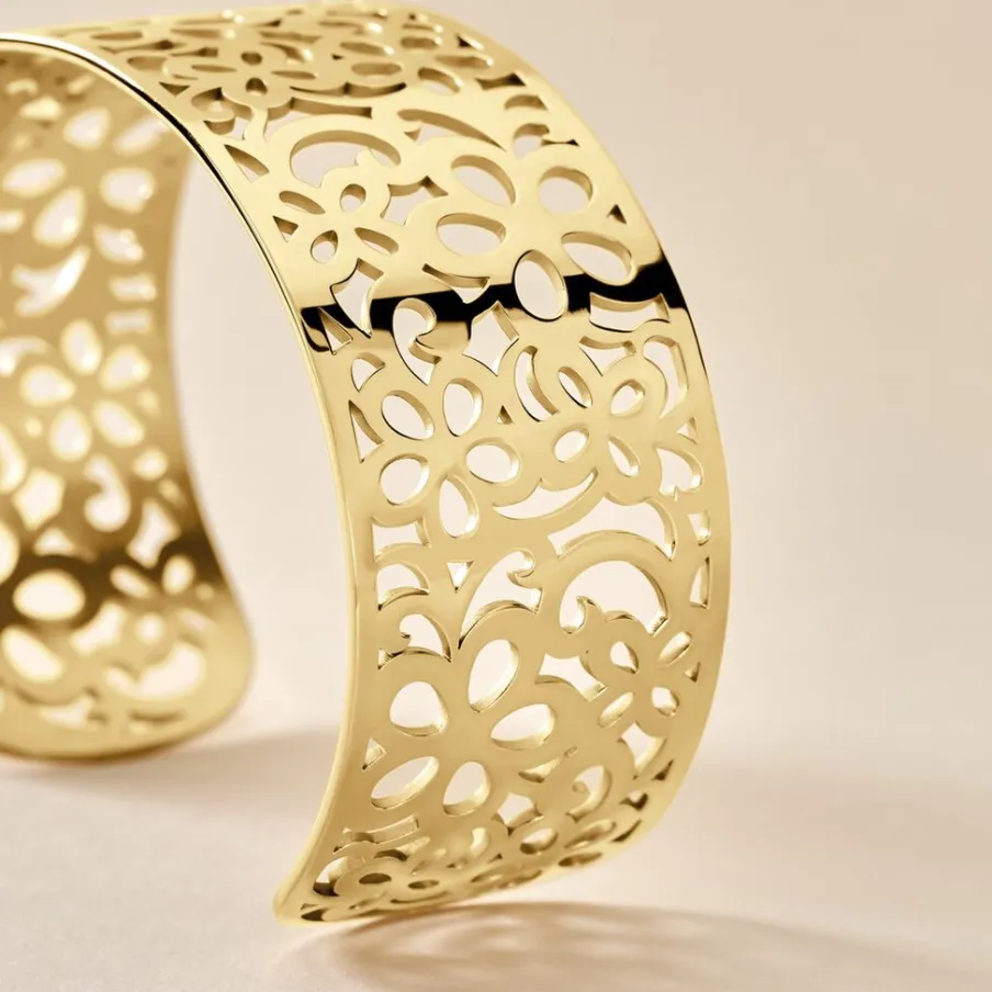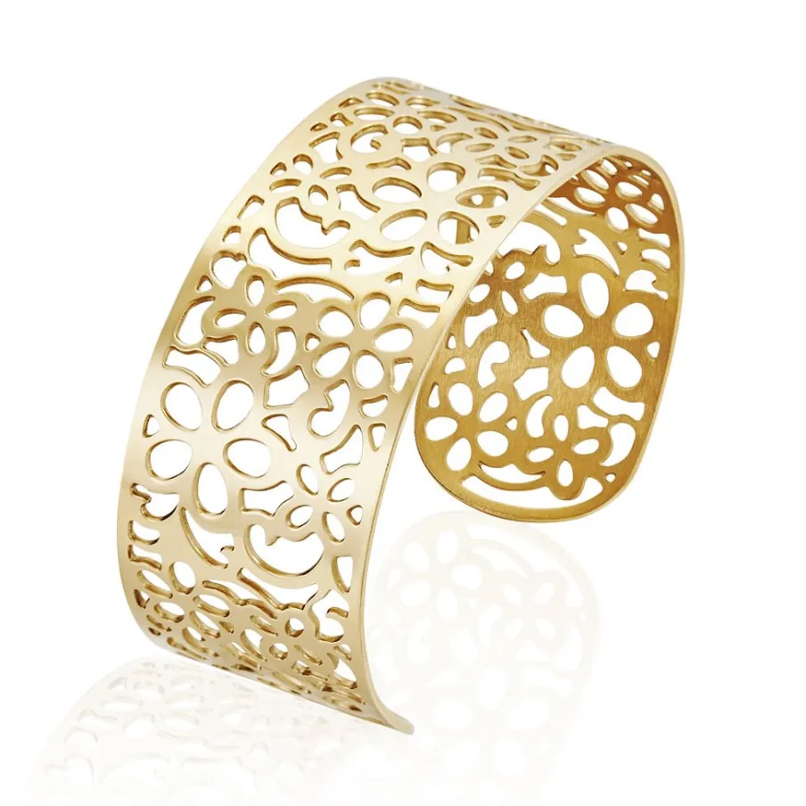 Bracelet Manchette Acier Dore Fleurs Ajourees