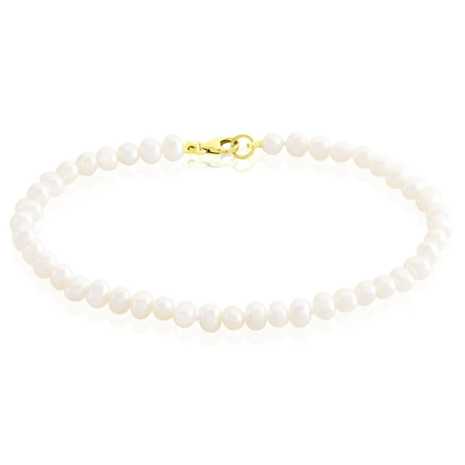 Bracelet Or Jaune 375/1000 Perles De Culture Semi-baroques 3.5/4mm 16cm