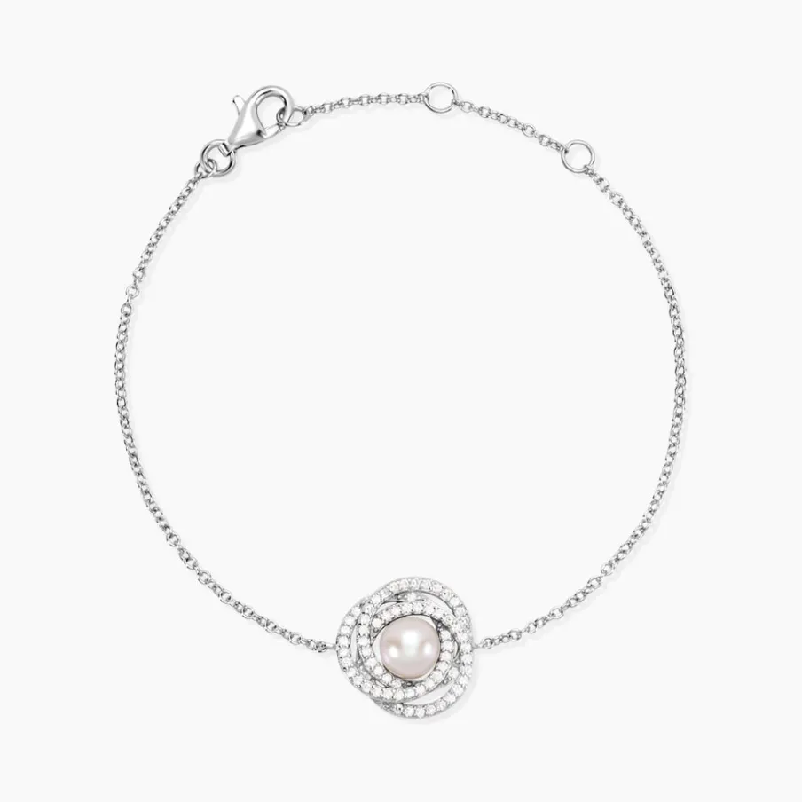 Bracelet Argent Blanc 925/1000 Rosace Oxyde Perle De Culture 18cm