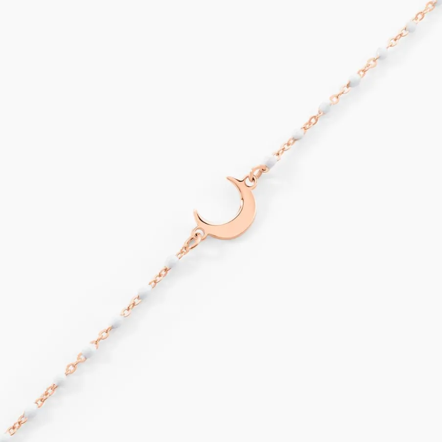 Bracelet Court Argent Rose 925/1000 Lune Boules émail Blanc Maille Boules 13+3cm