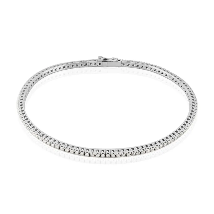 Bracelet Or Blanc 375/1000 Moscou Rivière De Diamants 1.155cts 17.5cm