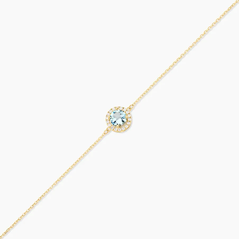 Bracelet Or Jaune 375/1000 Solitaire Topaze Sky 0,4Cts Serti 4 Griffes Entourage Oxyde De Zirconium Maille Forcat 16+2Cm