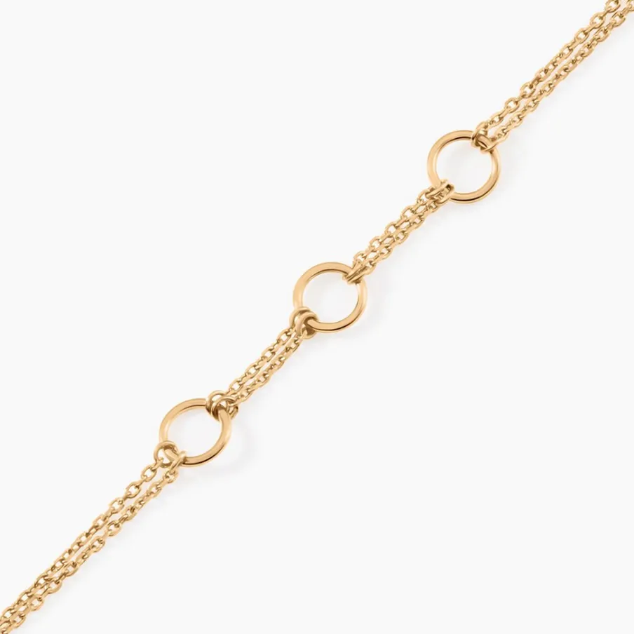 Bracelet Plaqué Or Jaune Triple Cercle Double Rang Mailles Forçat 16+3cm