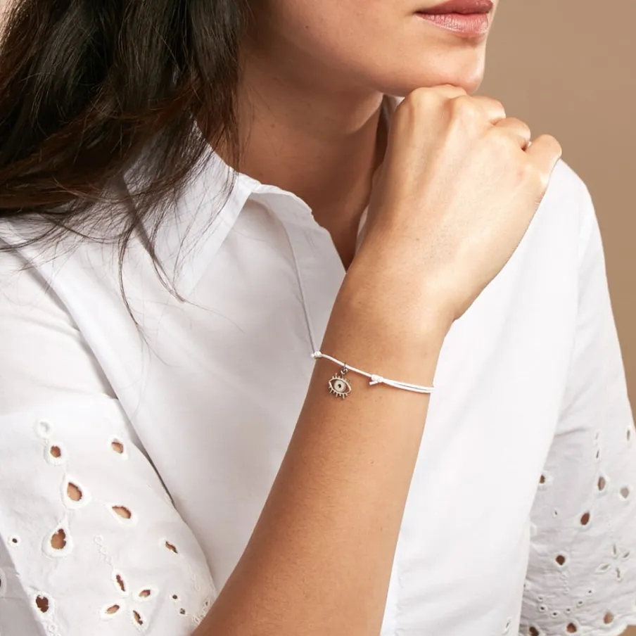 Bracelet Argent Blanc 925/1000 Pampille Oeil Cordon Blanc Ajustable