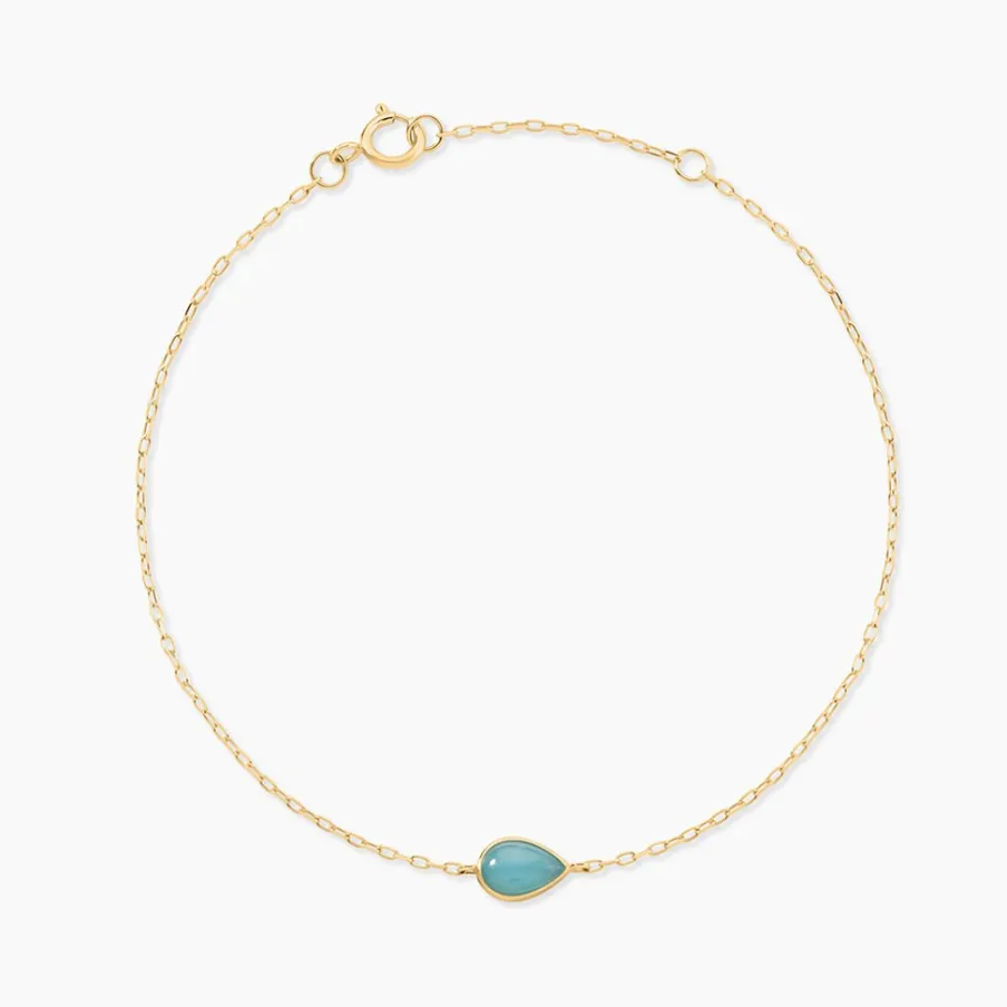 Bracelet Or Jaune 375/1000 Goutte Amazonite Turquoise Maille Forcat 16+2Cm