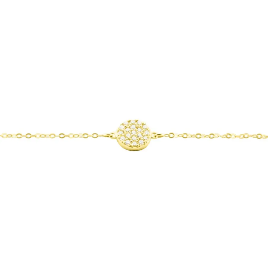 Bracelet Or Jaune 375/1000 Pastille Ronde Oxyde De Zirconium Maille Forçat 18cm