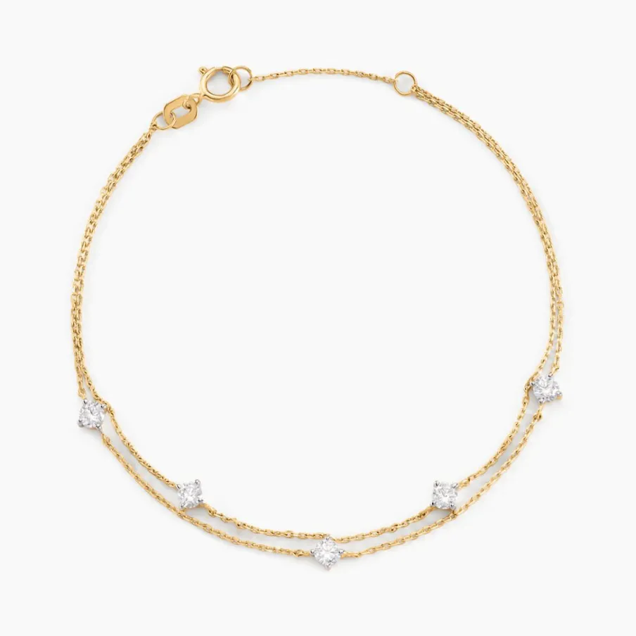 Bracelet Or Jaune 375/1000 Double Chaine Oxydes De Zirconium Serti Griffes Maille Forcat 16+2cm