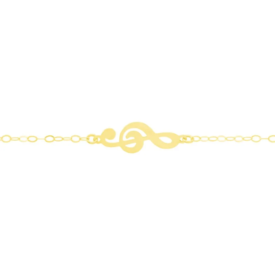 Bracelet Or Jaune 375/1000 Motif Clef De Sol 18cm