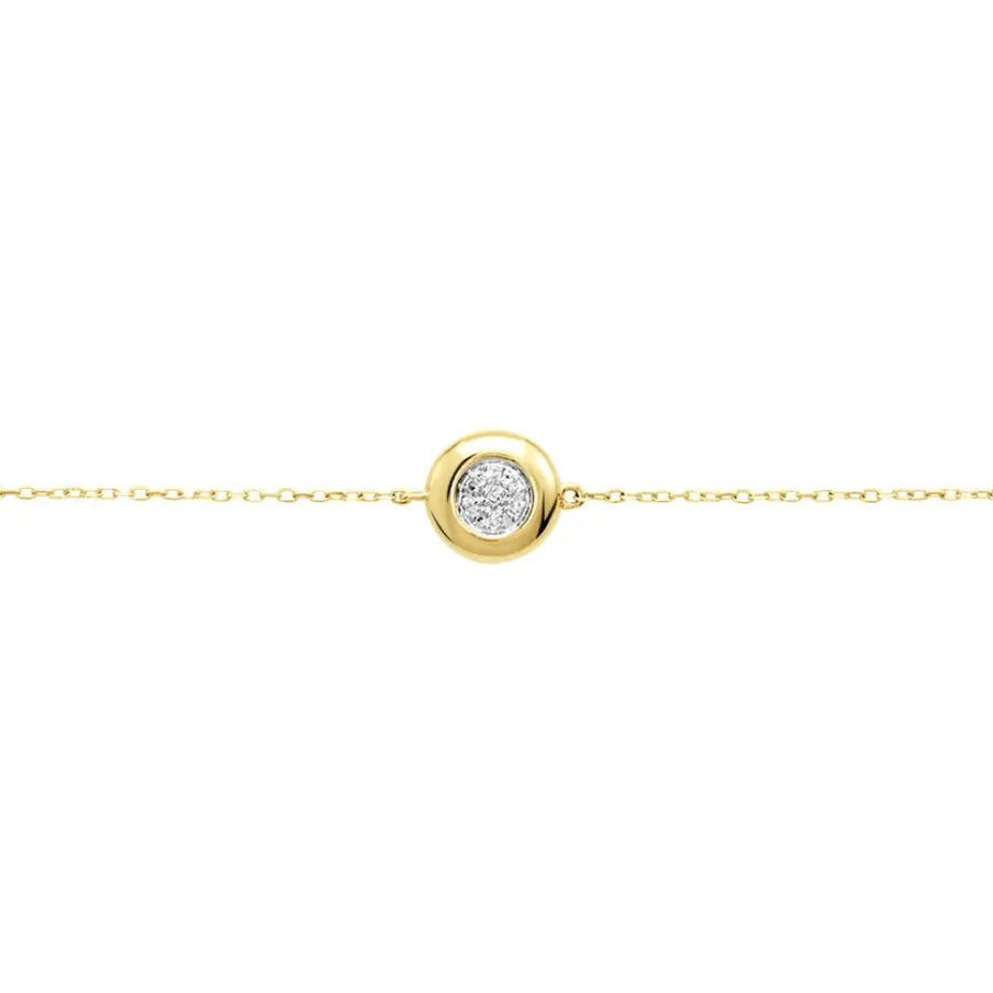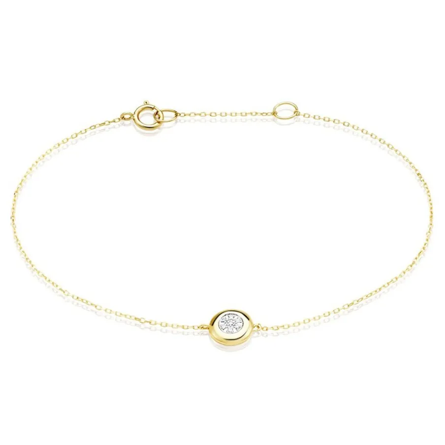 Bracelet Or Jaune 375/1000 Pastille Pavage Diamants Maille Forcat 16+2cm