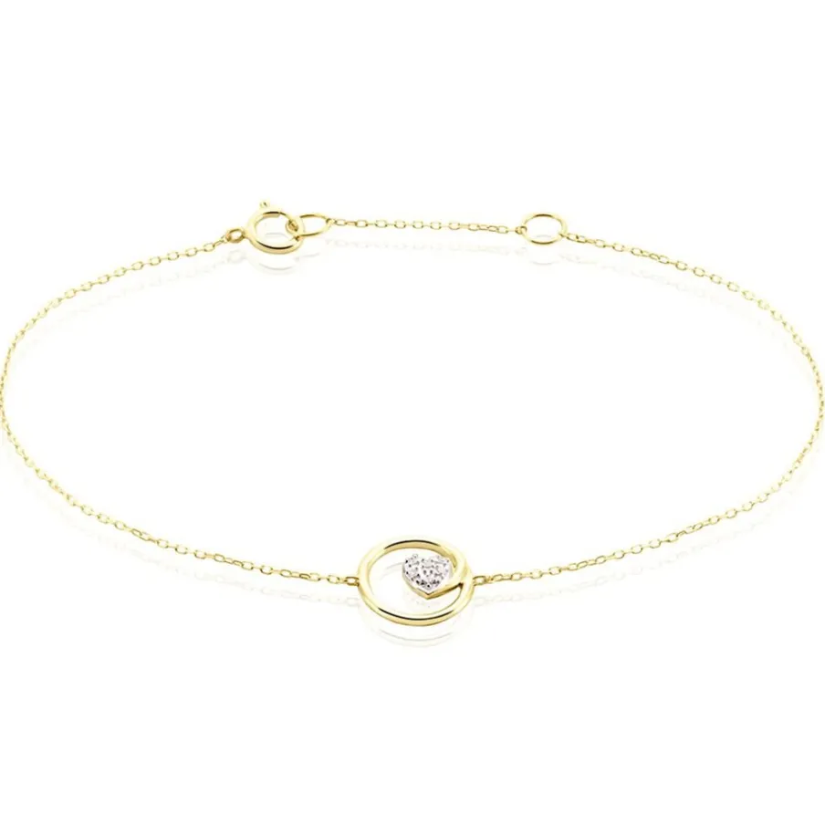 Bracelet Or Jaune 375/1000 Forme Cercle Intérieure C艙ur Pavage Diamants Blancs Maille Forçat 16+2cm