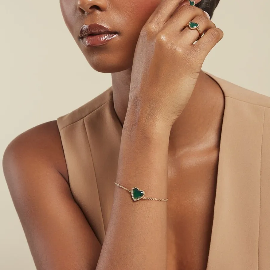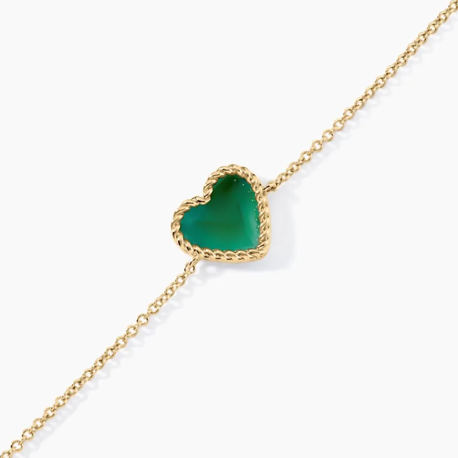 Bracelet Plaqué Or Jaune C艙ur Entourage Torsadé Agate Verte Maille Jaseron 16+2cm