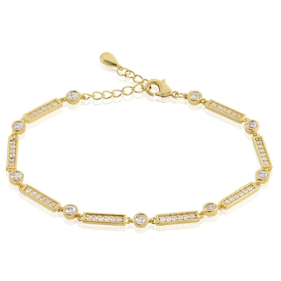 Bracelet Plaque Or Jaune Maille Fantaisie Oxydes De Zirconium 20cm