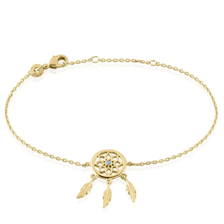 Bracelet Plaque Or Jaune Turquoise Maille Forcat 19cm