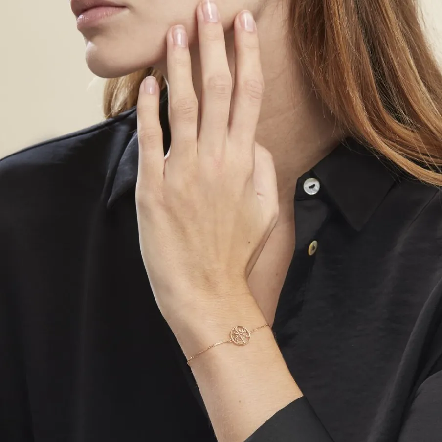Bracelet Plaque Or Jaune Arbre De Vie Chaine Forcat 18cm