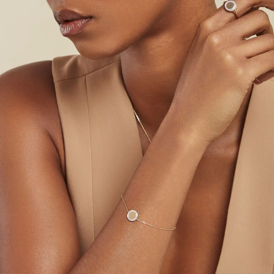 Bracelet Or Jaune 375/1000 Rond Gravable Diamants 0.009cts Illusion Maille Forcat 16+2cm