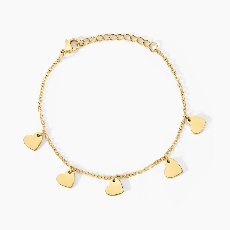 Bracelet Acier Inoxydable Jaune Pampilles Forme C艙ur Maille Forçat Longueur 16+3cm