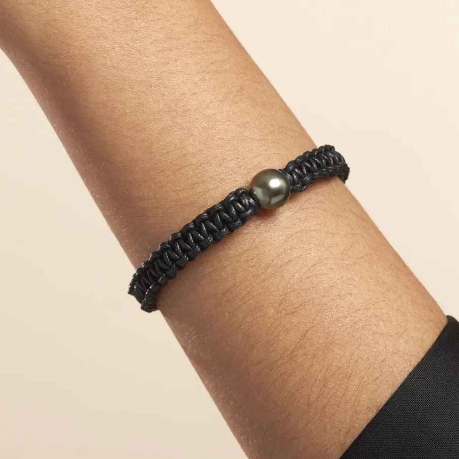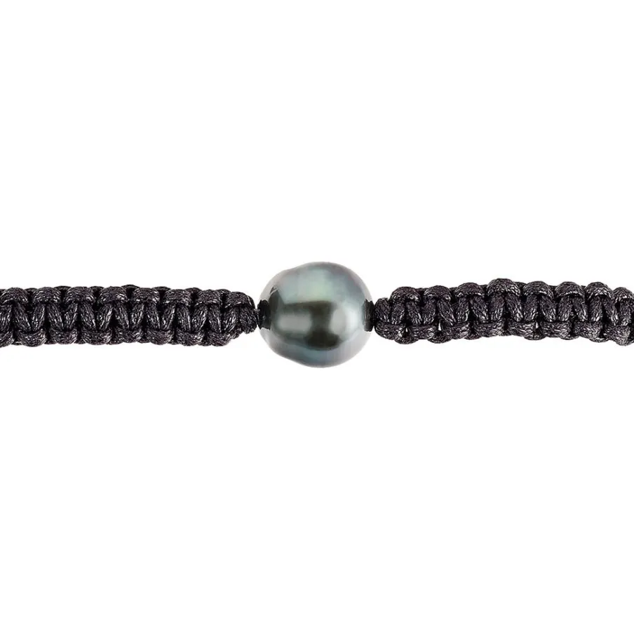 Bracelet Or Blanc 375/1000 Perle De Culture Mers Du Sud Tahiti 9/10mm Cerclée