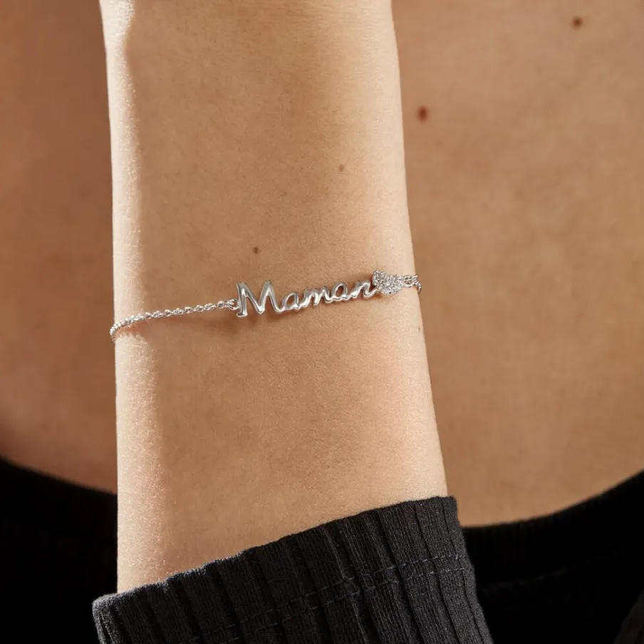 Bracelet Argent 925/1000 rera Message Maman Et C艙ur Pavage Oxydes De Zirconium 18.5cm