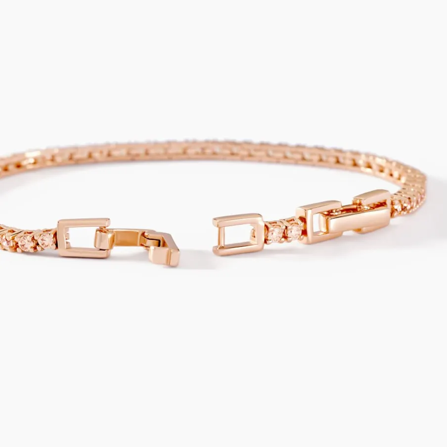 Bracelet Ajustable Argent Rose 925/1000 Maille Tennis Oxydes De Zirconium Champagne Serti 4 Griffes 2mm 17+2cm