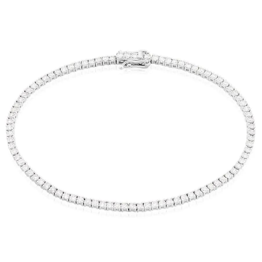Bracelet Or Blanc 750/1000 Rivière De Diamants Serti Griffes 19cm
