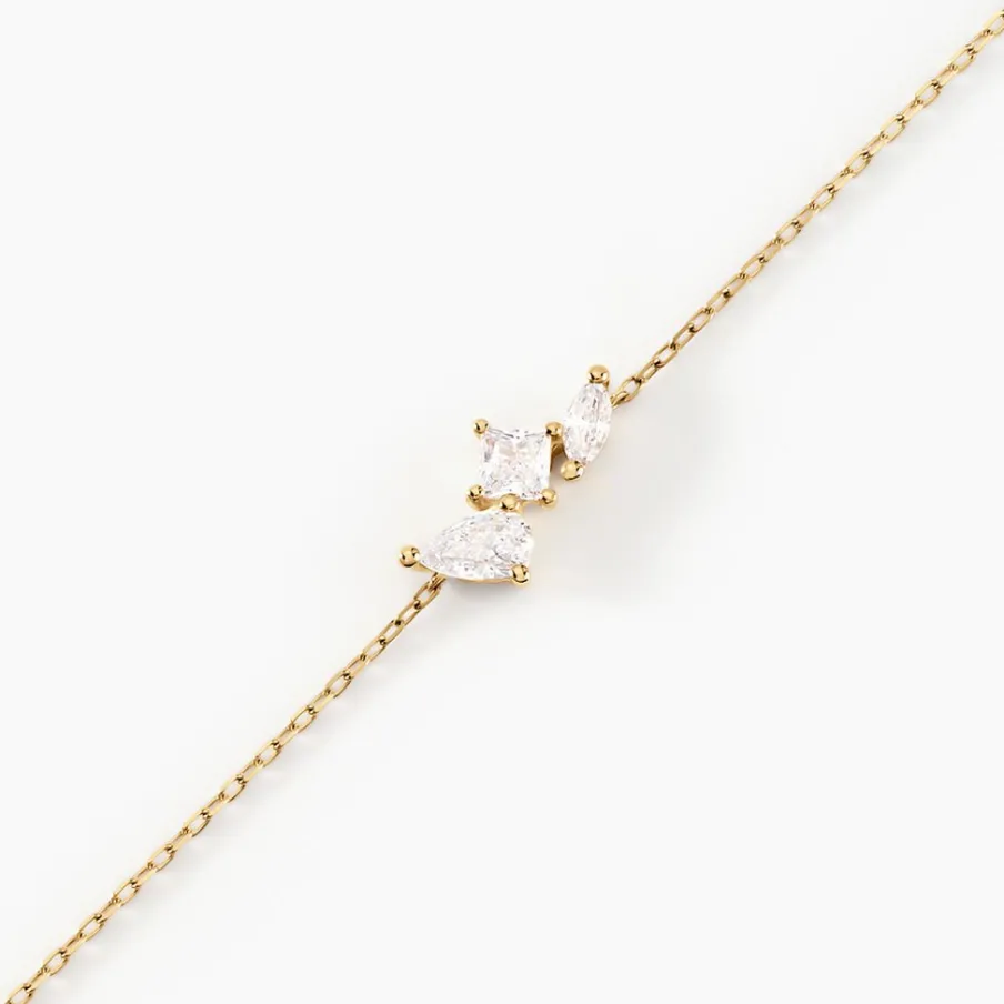 Bracelet Or Jaune 375/1000 Multipierres Oxyde Zirconium Poires Carrees Et Navettes Serti Griffes Forcat 16+2cm