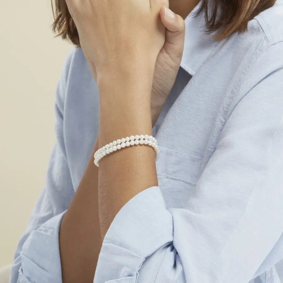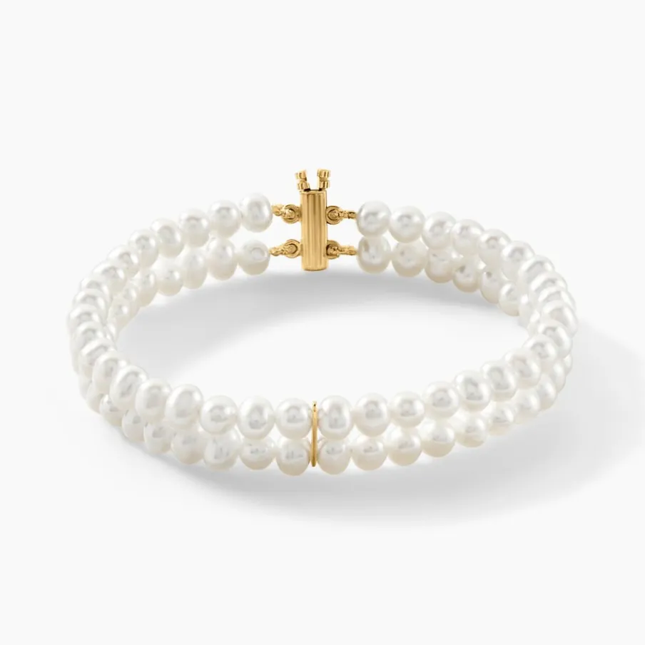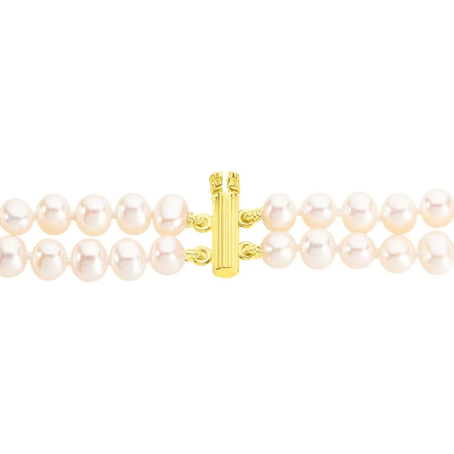 Bracelet Or Jaune 375/1000 Perles De Culture Semi-baroques 2 Rangs + Barrettes Or 4.5/5mm 18cm