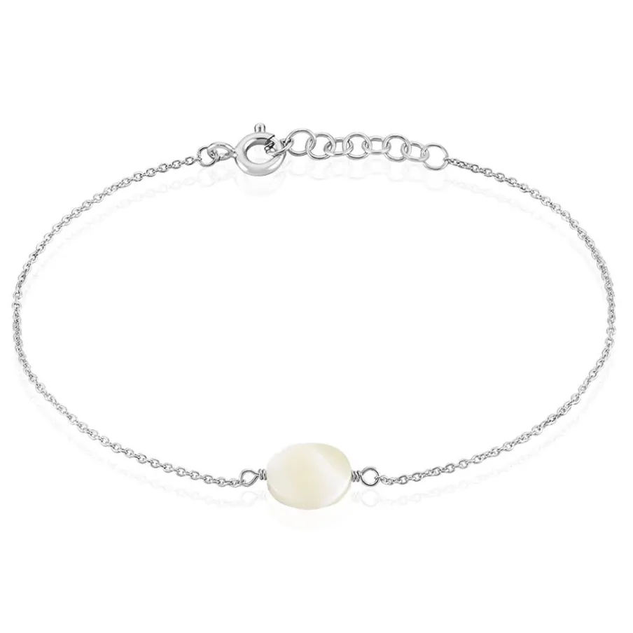 Bracelet Argent Blanc 925/1000 Pierre Nacre Blanche Maille Forcat 18.5cm