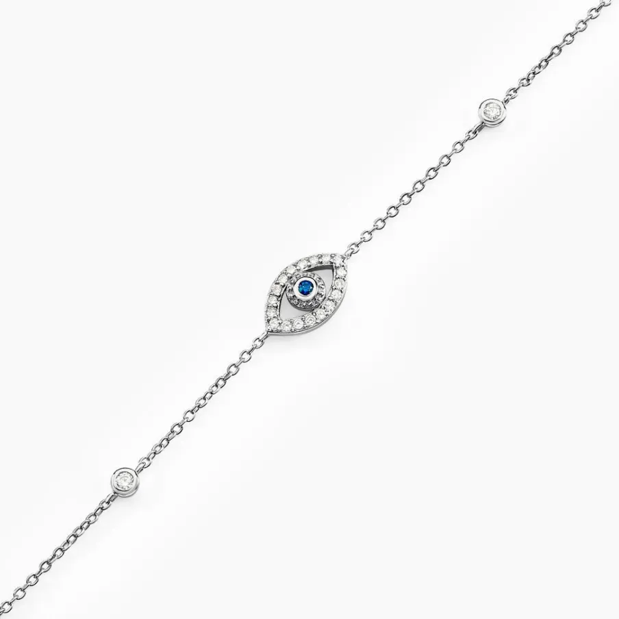 Bracelet Argent 925/1000 symbolique Oeil Oxyde + Petits Oxyde Clos 18cm