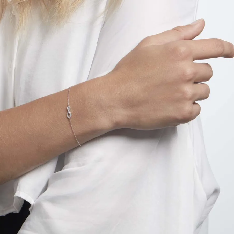 Bracelet Or Blanc 375/1000 Forme Infini Goutte Pavage Diamants Maille Forçat 18cm